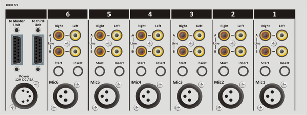 Breid je Airence-setup uit met uitbreidingsunits met zes drievoudige ingangskanalen, hoogwaardige microfooningangen op XLR en twee stereo line-level ingangen op cinch (RCA)-connectoren, die eenvoudig op de hoofdeenheid kunnen worden aangesloten.